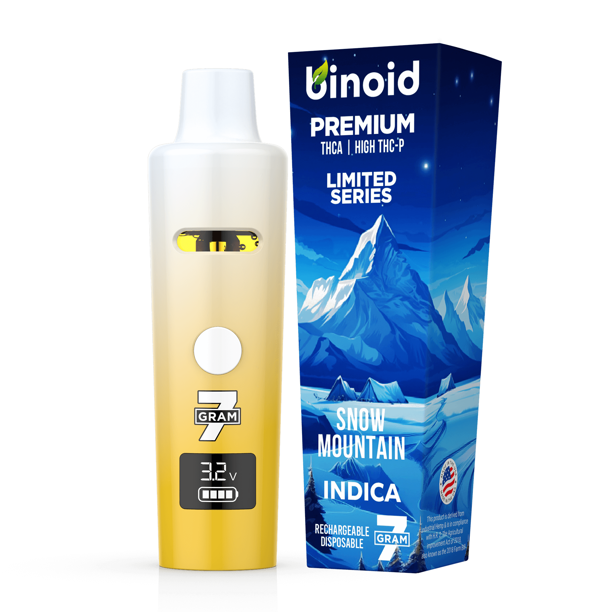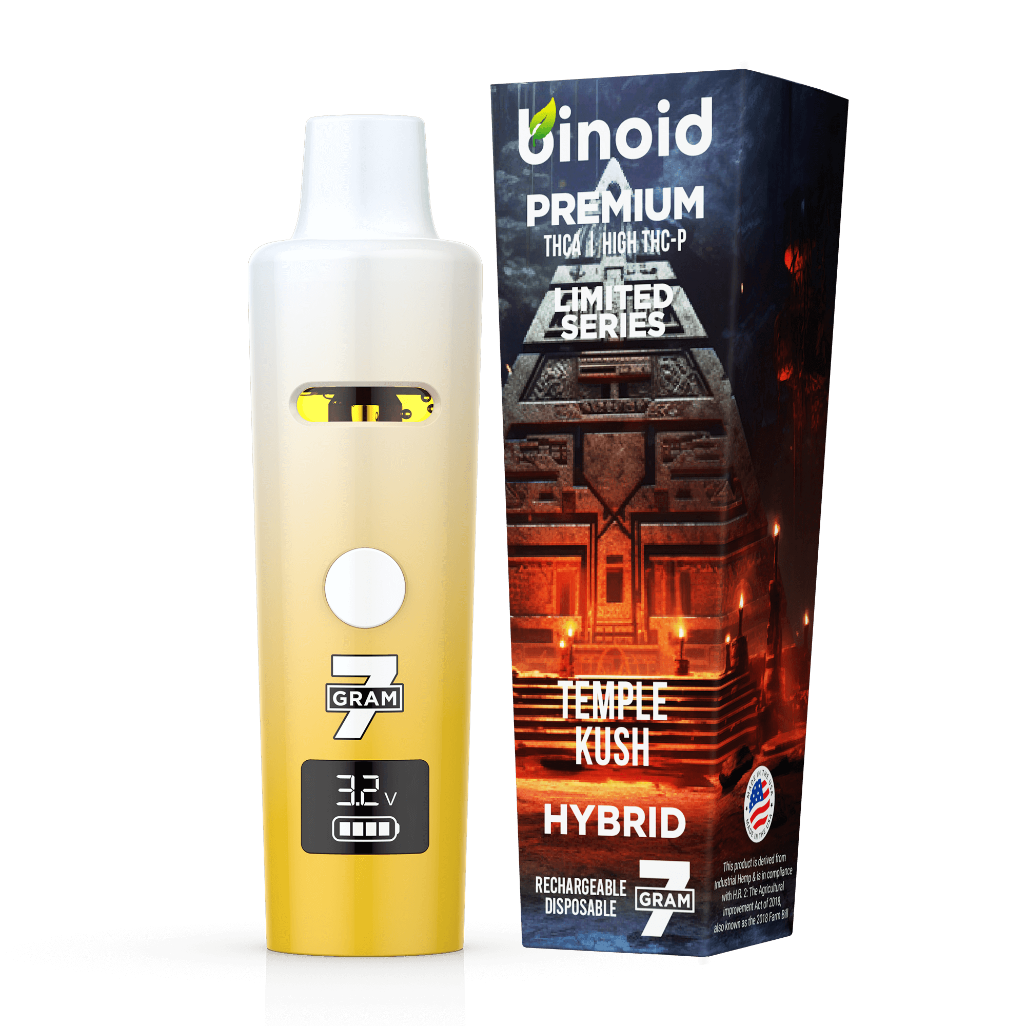 The Binoid Limited Series 7 Gram is taking the world by storm, and is getting extremely popular with these awesome live terpene flavors. Users may feel an extraordinary buzz and experience. Nobody uses High THC-P in their vapes because it's expensive. Our customers wanted it, so we did it anyway. Enjoy!