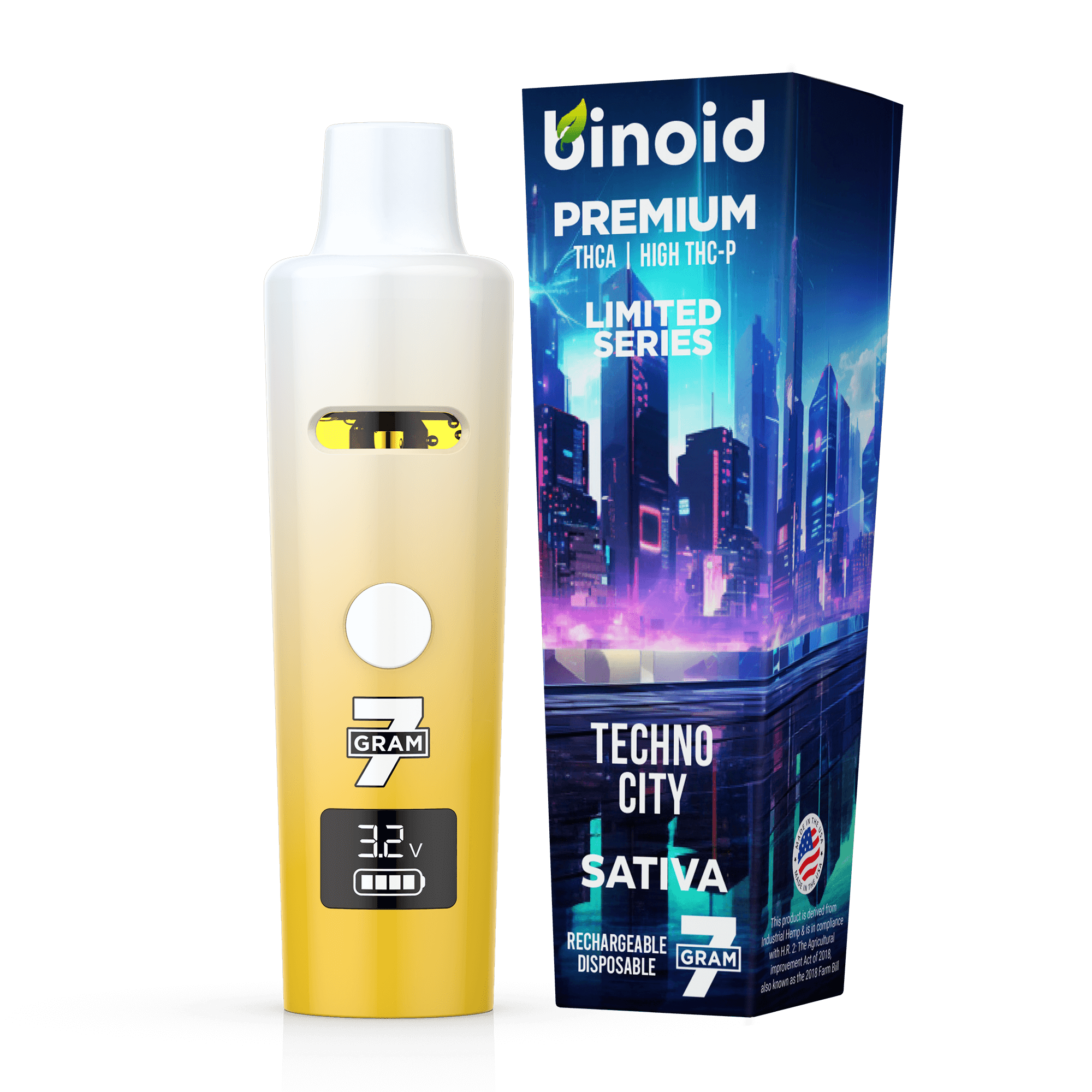 Binoid is the best place to buy 7 gram vape cartridge online, with premium distillate in each vape. Binoid has thousands of website reviews, and some of the highest rated THCA and high THC-P online. The Binoid 7 Gram Limited Series has an unbeatable uplifting feel. Binoid’s 7G rechargeable is derived from hemp and federally legal. We infused our live resin disposable with real cannabis terpenes to allow for amazing Sativa, Indica, and Hybrid effects.