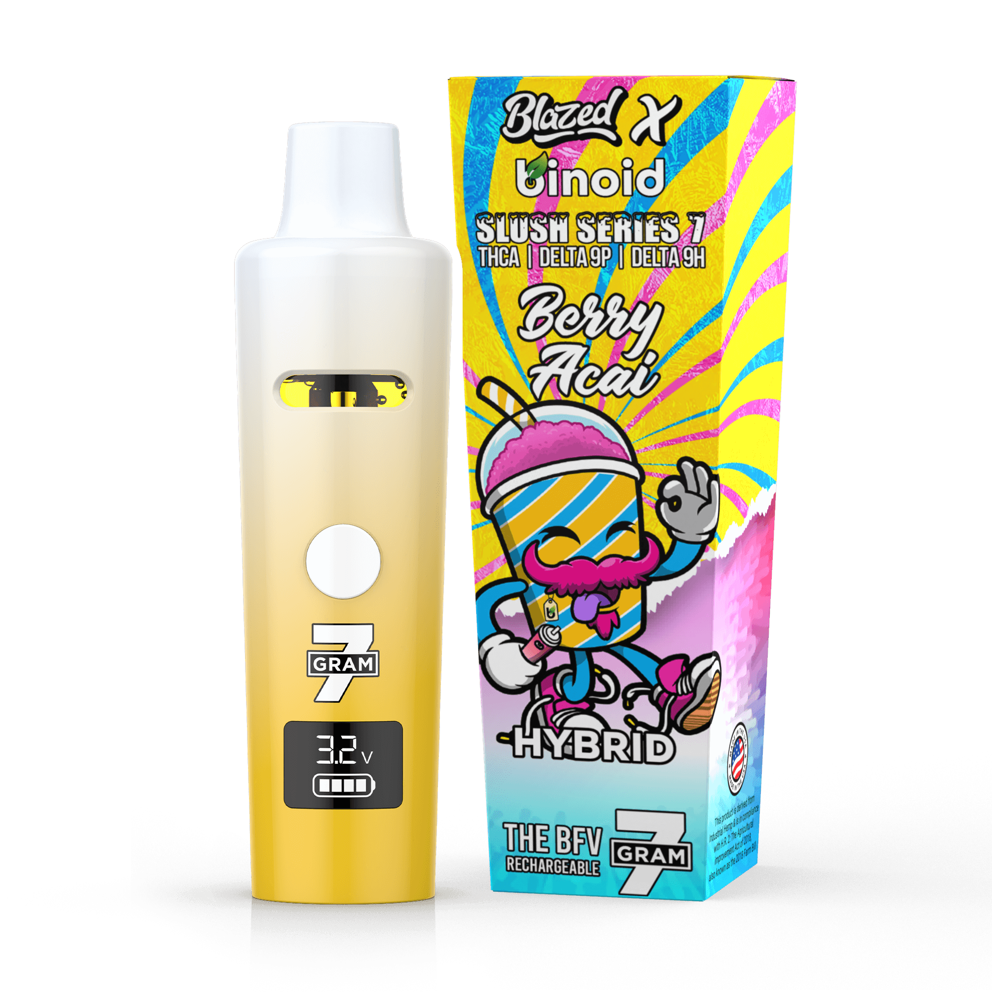 Binoid is the best place to buy Blazed 7 gram disposables online, with premium distillate in each disposable. Binoid has thousands of website reviews, and some of the highest rated THCA, Delta 9P, and Delta 9H online. The Binoid 7 Gram Slush Series has an unbeatable uplifting feel. Binoid’s live resin rechargeable is derived from hemp and federally legal. We infused our live resin disposable with real cannabis terpenes to allow for amazing Sativa, Indica, and Hybrid effects.