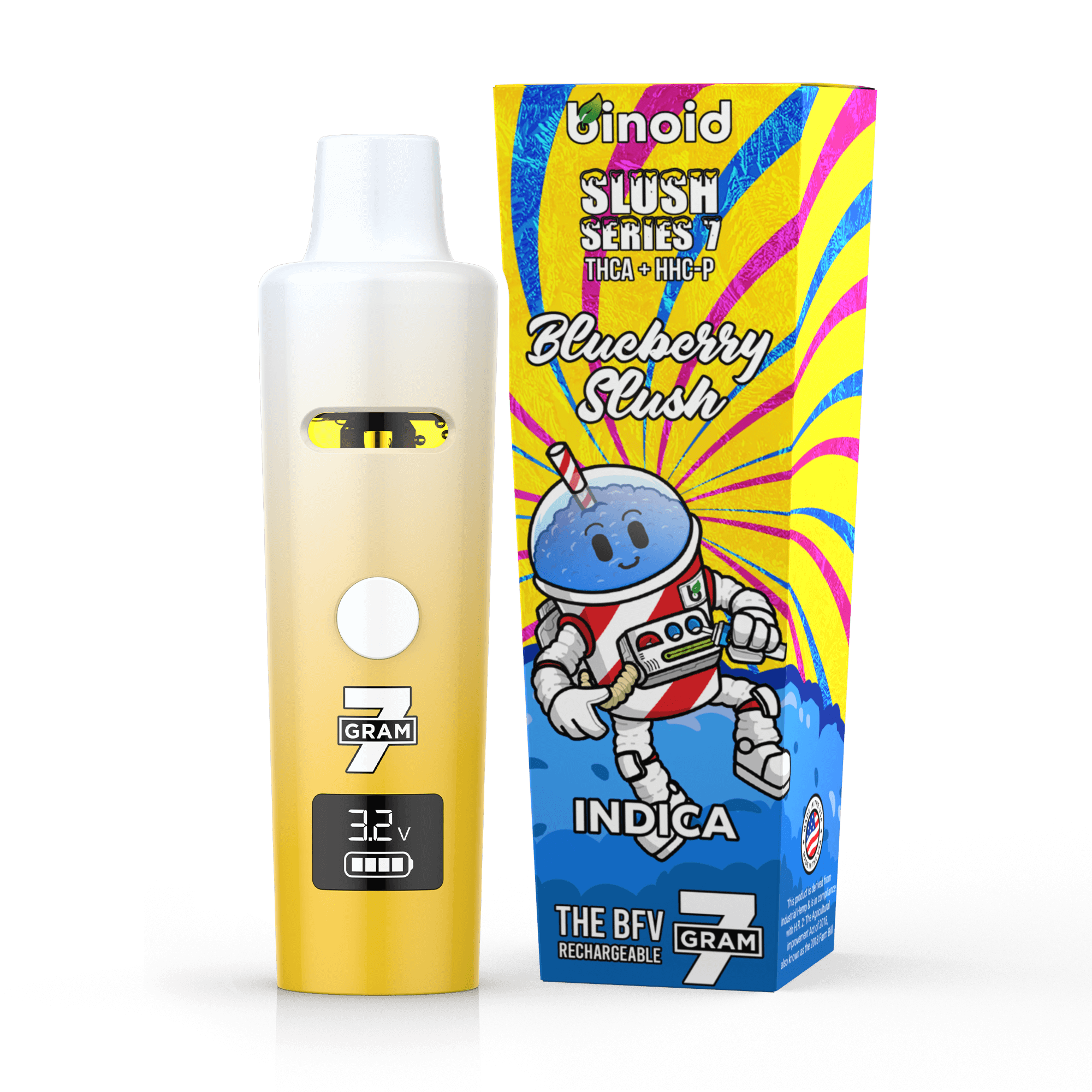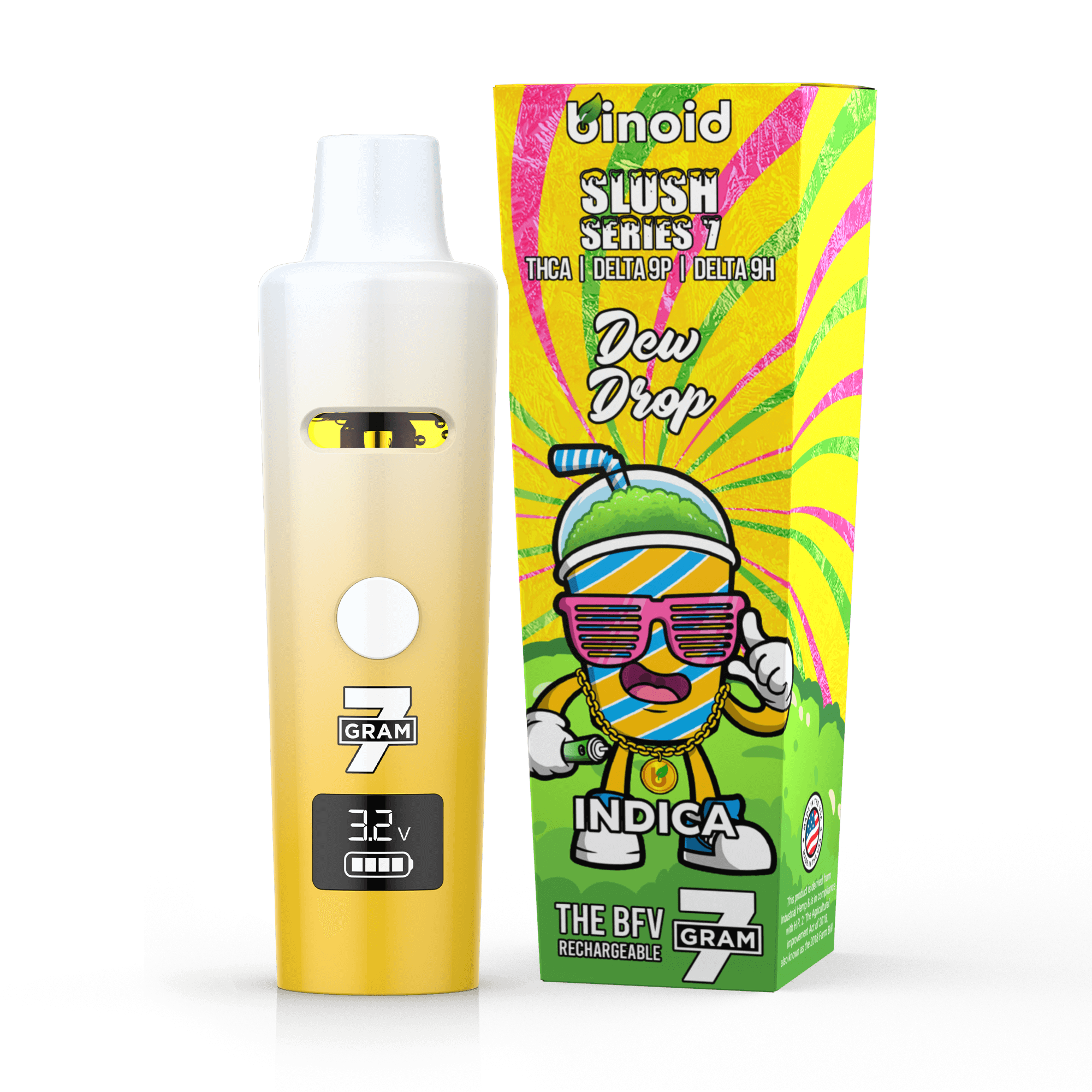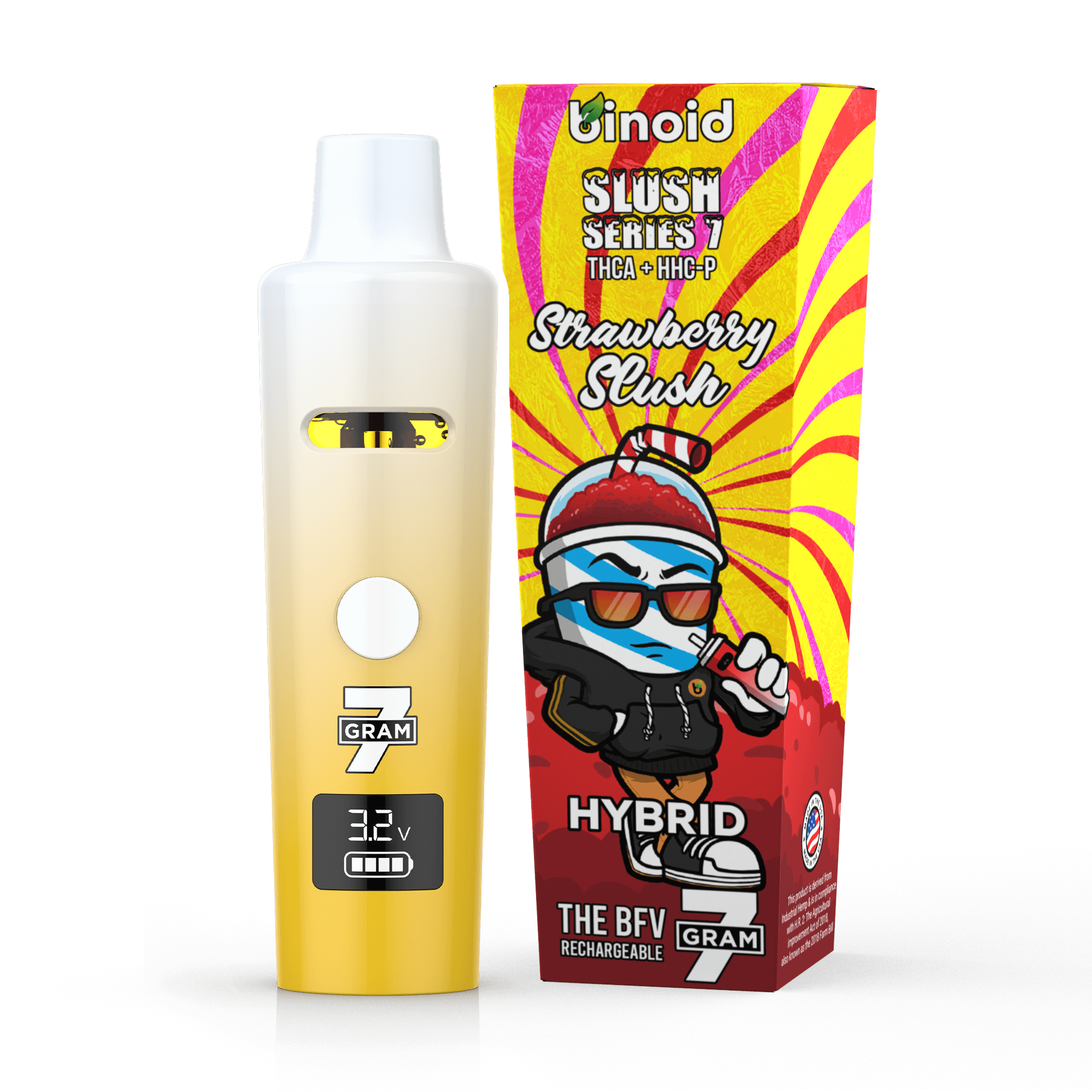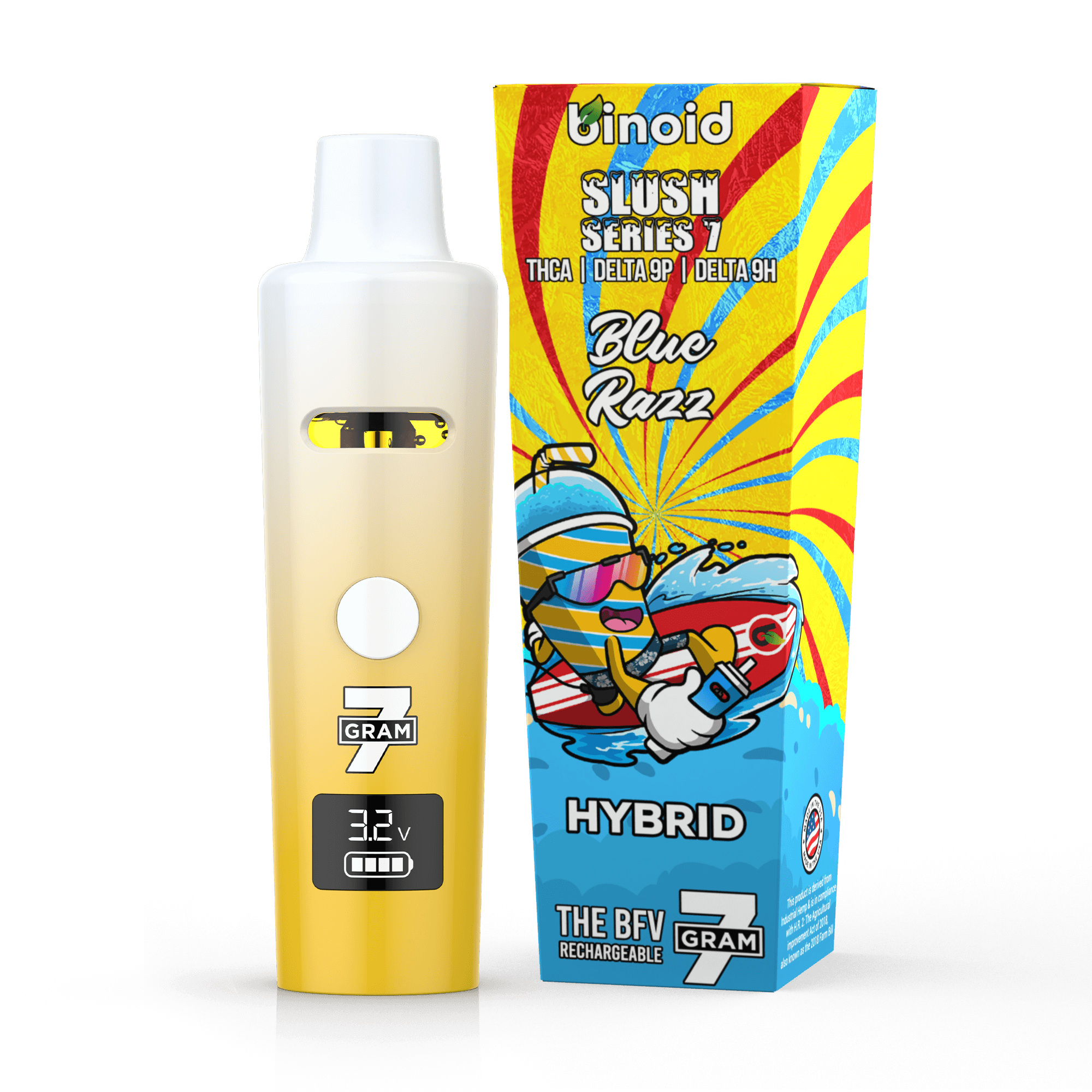 Binoid is the best place to buy 7 gram vape cartridge online, with premium distillate in each vape. Binoid has thousands of website reviews, and some of the highest rated THCA, Delta 9P, and Delta 9H online. The Binoid 7 Gram Slush Series has an unbeatable uplifting feel. Binoid’s live resin rechargeable is derived from hemp and federally legal. We infused our live resin disposable with real cannabis terpenes to allow for amazing Sativa, Indica, and Hybrid effects.